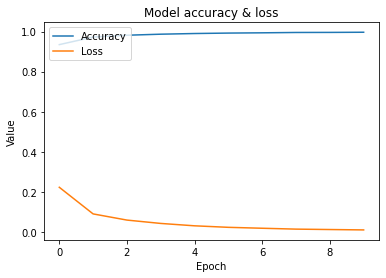 plt.legend(['Accuracy', 'Loss'], loc='upper left')