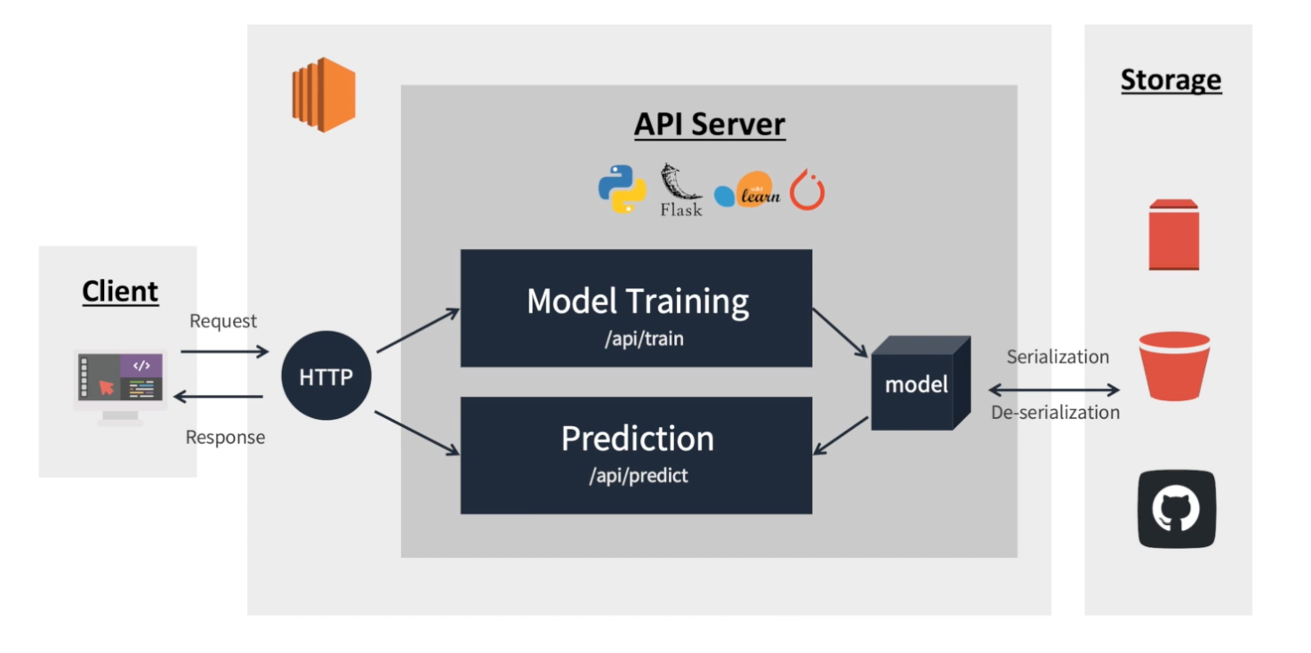 - 학습된 모델을 REST API로 배포하기 위해 학습된 모델의 Serialization과 웹 프레임워크를 통해 배포 준비 필요