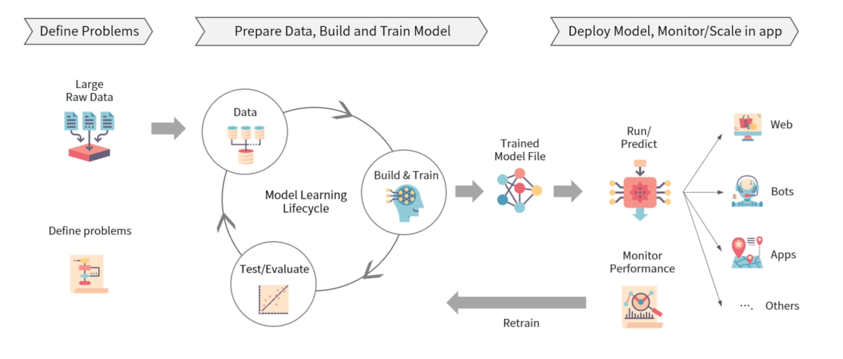 - 문제 정의, 데이터 준비, 모델 학습 및 검증, 모델 배포, 모니터링 등의 과정을 통해 ML/DL 모델 적용